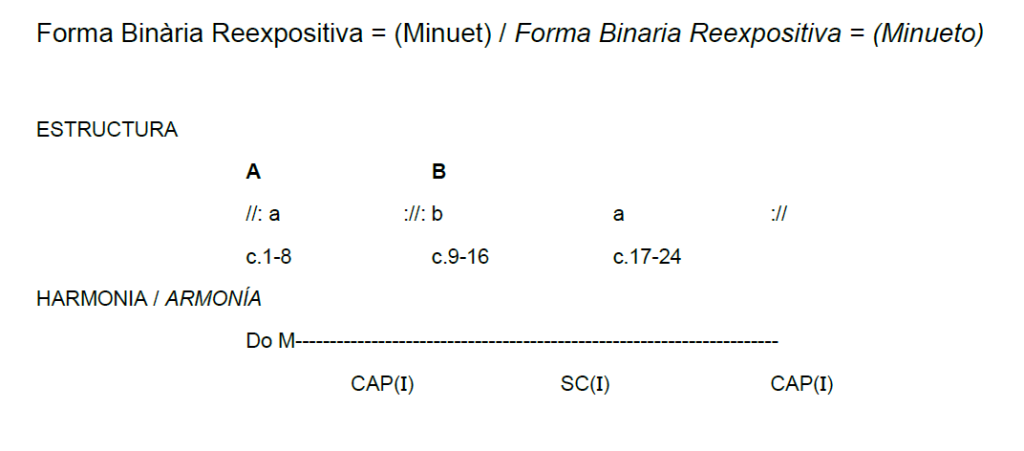 Las Partes y Subpartes son los dos elementos propios de la estructura. En primer lugar, nos centraremos en asignar una letra a cada Subparte en función del material temático que presenten. La nomenclatura que utilizaremos para cifrar cada Subparte serán letras minúsculas siguiendo el orden del abecedario. Si dos frases presentan las mismas características respecto a las 7 variables musicales, las cifraremos con una «a» cada una. Si dos Subpartes presentan ciertas diferencias en alguna de las 7 variables musicales pero características idénticas en el resto de variables, cifraremos con una en la primera frase y una «a» o «a1» la segunda. Existen dos posibilidades, utilizar las comas o también llamadas prima (a’, a’’, a’’’, etc.) o bien subíndices con números (a1, a2, a3, etc.). Por último, si dos frases difieren en dos o más variables, cifraremos la primera Subparto con una «a» y la segunda con una «b».